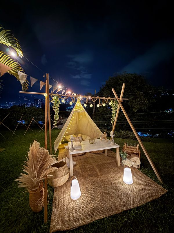 Nuestra zona picnic boho, es una zona diseñada para parejas que desean celebrar el amor, ideal para celebrar pedidas de noviazgo, matrimonio, aniversarios o cumpleaños
